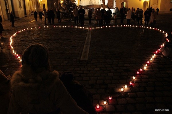 A gyertyagyújtást követően a Karitász önkéntesei gyertyákat osztottak a résztvevőknek, majd közösen meggyújtották a szeretet lángját jelképező mécseseket, nagy szív alakot formázva a Szentháromság téren. Az „Egymillió csillag a szegényekért" elnevezésű országos szolidaritási akció célja a szolidaritás erősítése, figyelemfelhívás a társadalom peremére szorult emberek, családok érdekében.