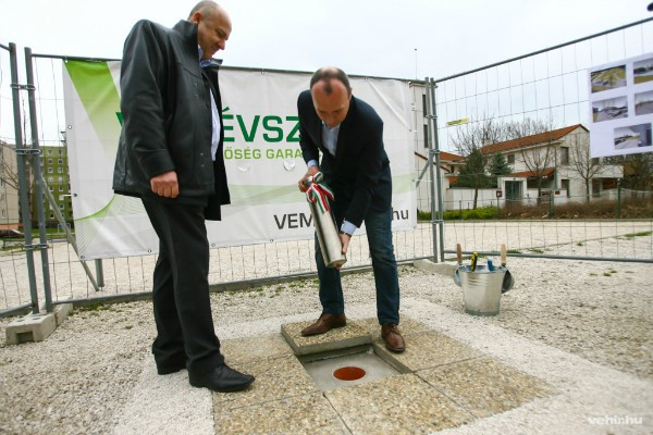Porga Gyula és Szücs István közösen helyezték el a kivitelezés indulását szimbolizáló időkapszulát, benne egy mai megyei napilappal és a kivitelezési tervekkel.