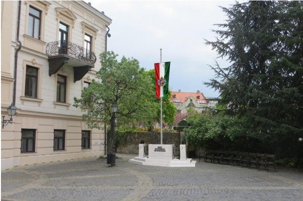 Veszprémben az 1944. március 15-én felállított-felavatott Országzászló szintén e téren állt, a jelenlegi Polgármesteri Hivatal „A” illetve „B” épülete közti - időközben megszüntetett, az Ányos Pál utcát lezáró - támfal előtt.