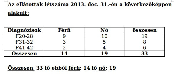 - A 2013-as évben 4 fő utcai szociális munkás dolgozott szolgálatunknál