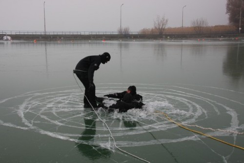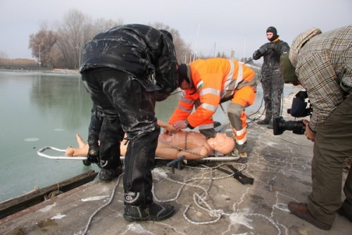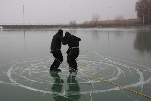 Ekképp kezdődnek azok a cikkek, amelyek valós mentésről adnak hírt a nagyvilágnak. Szerencsére most azonban csak gyakorlat fagyoskodó részesei lehettek azok a sajtósok, akik elfogadták a Balatoni Vízirendészeti Kapitányság és a Vízimentők Magyarországi Szakszolgálatának Közös gyakorlatára invitáló meghívót. A látványos, de főképp tanulságos gyakorlaton ott violtak a Pest Megyei Kutató-Mentő Szolgálat munkatársai, továbbá Nagy Jenő, a Balatoni Vízirendészeti Rendőrkapitányság megbízott vezetője is.