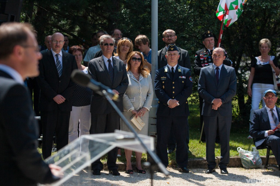 Dr. Navracsics Tibor külgazdasági és külügyminiszter, Veszprém város országgyűlési képviselője, az országos Első Világháborús Centenáriumi Bizottság elnöke köszöntőjében elmondta, hogy száz évvel ezelőtt, 1914. június 28-án Gavrilo Princip revolverlövésével politikai értelemben megkezdődött a huszadik század. Az a pisztolylövés akkor egy addig beláthatatlan méretű, beláthatatlan következményekkel járó világégést provokált ki, hiszen megölték a közép-európai központi hatalom trónörökösét, Ferenc Ferdinándot, aki számos reformtervet fontolgatott.