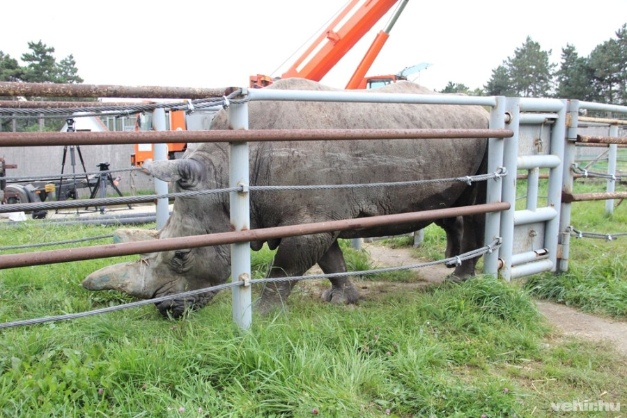 A szállítást ugyanaz a nagytestű állatkerti állatokra szakosodott állatszállító bonyolította, aki néhány napja a kis elefántokat hozta meg Veszprémbe, gyorsan és rutinosan végezték a nehéz konténer beemelését.
