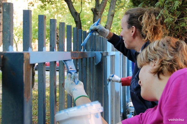 Szombat délelőtt a terveket tettek követték. A szülői munkaközösség tagjai a diákokkal összefogva álltak neki, hogy a közel 400 méter hosszú kerítést felújítsák.
