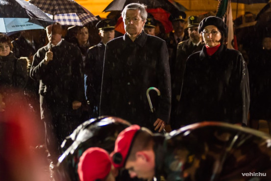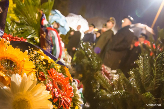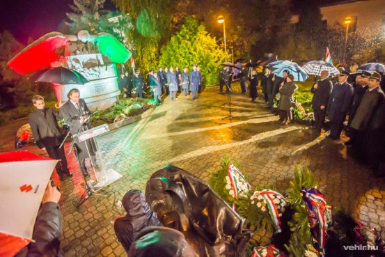 A megyei és városi képviselők, a fegyveres testületek, a pártok, az egyetem, valamint a civil és 56-os szervezetek képviselői díszőrség kíséretében helyezték el az emlékezés koszorúit, Veszprém polgárai pedig mécseseket elhelyezve idézték fel a múltat.