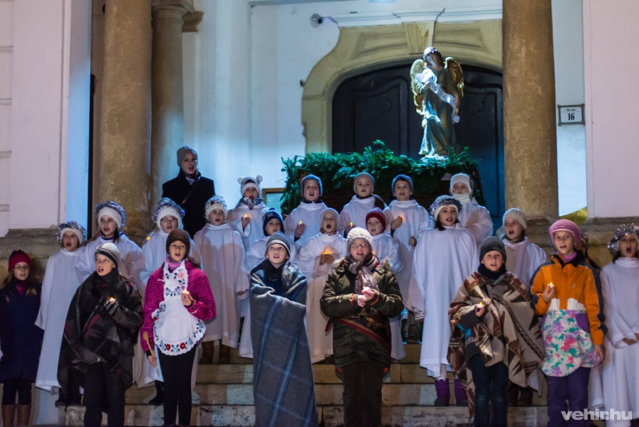 Az este folyamán karácsonyi koncertre várták az érdeklődőket a Hangvillába, ahol Veszprém Város Vegyeskara és a Mendelssohn Kamarazenekar adott műsort. Némedi Lajos alpolgármester ünnepi köszöntőjében kiemelte: ezekben a hetekben a legszebb ünnepre készülünk izgalommal és örömmel a szívünkben, nem ritkán könnyekkel a szemünkben. Meglepetésekkel, ajándékokkal, ígéretekkel fejezzük ki érzéseinket, és prózával, verssel, zenével varázsoljuk még meghittebbé a karácsonyt.