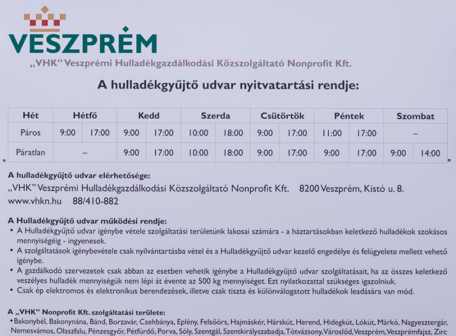 Temesvári Balázs vezérigazgató a megnyitón elmondta, hogy a beruházással egy évek óta várt, fontos, hiánypótló, és az Európai Unió környezetvédelmi normáit szem előtt tartó hulladékudvar nyílt Veszprémben.