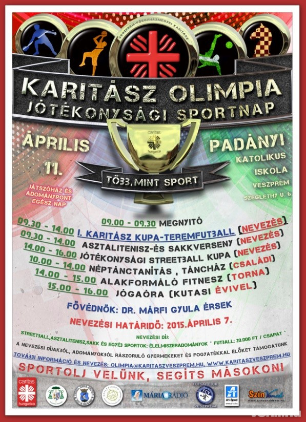Zagyva Richárd, a szervező Veszprém-Főegyházmegyei Karitász igazgatója elmondta, a sportnap célja, hogy felhívja a figyelmet: a rászorulók segítése nem csak a megszokott formákban valósítható meg, hanem például egy közös sportnap keretében is. Éppen ezért a nevezési díjakat tartós élelmiszer adományok formájában várják a szervezők, az I. Karitász kupa elnevezésű teremfutball versenyre pedig pénzdíjas a regisztráció, a bevételt teljes egészében a fogyatékkal élő fiatalok támogatására fordítják. A sportprogramokra április 7-ig lehet jelentkezni a rendezvény honlapján.