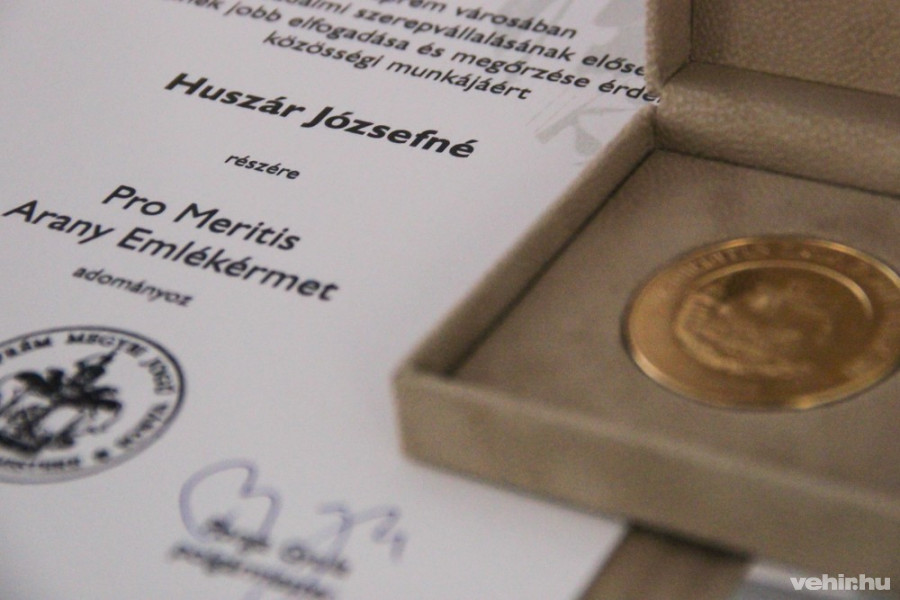Veszprém Megyei Jogú Város polgármestere Huszár Józsefné, Júliát a veszprémi közösségi életben vállalt példamutató és áldozatkész tevékenységének elismeréseként Pro Meritis Arany Emlékéremmel tünteti ki – hangzott el a laudációban.