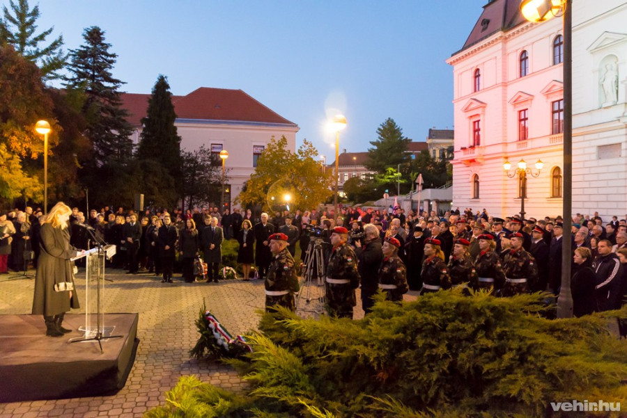 A városvezetés által szervezett eseményt este hat órakor Veszprém Város Vegyeskara és a veszprémi Légierő Zenekar által előadott Himnusz nyitotta meg. A Megyeház tér szinte teljesen megtelt a megemlékezőkkel.