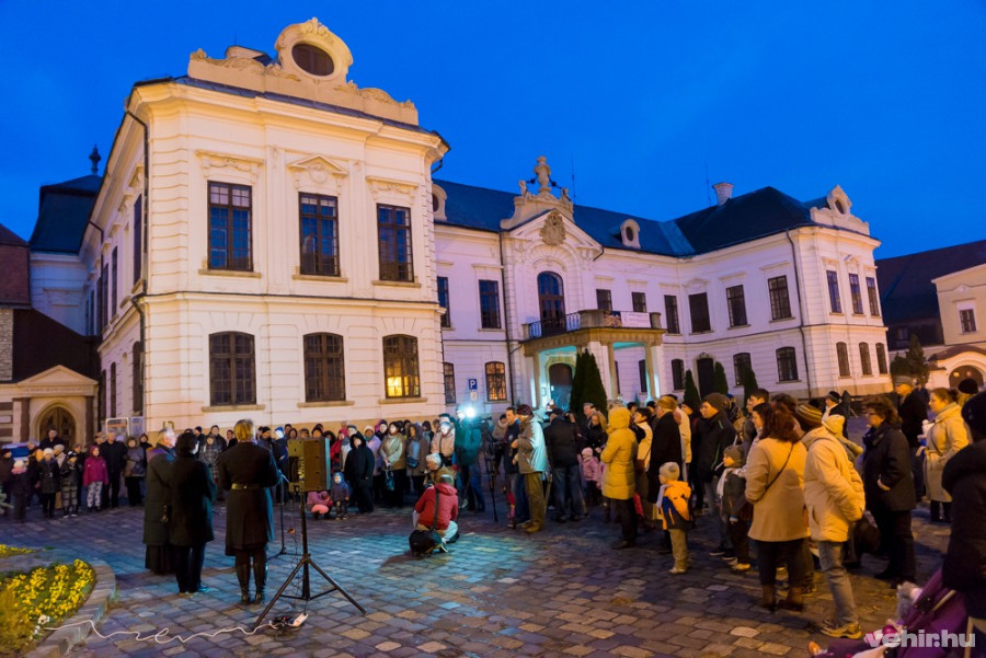 Az évszakhoz képest kellemes időjárásnak is köszönhetően sokan gyűltek össze vasárnap este a Szentháromság téren, hogy részt vegyenek az első adventi gyertya meggyújtásán.