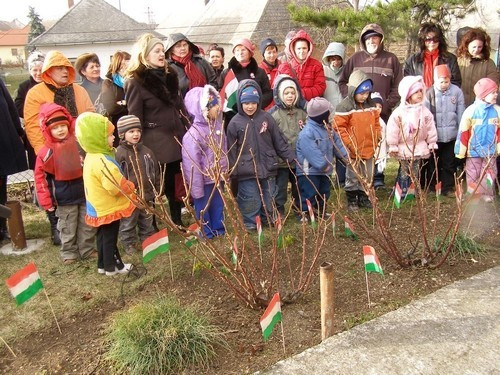 A megemlékezés a Ficánka tagóvoda csemetéinek műsorával folytatódott – akik felnőttes fegyelemmel álltak helyt az ítéletidő ellenére – majd Jakab Éva korabeli katonaénekekkel idézte meg a szabadságharc keserédes hangulatát.