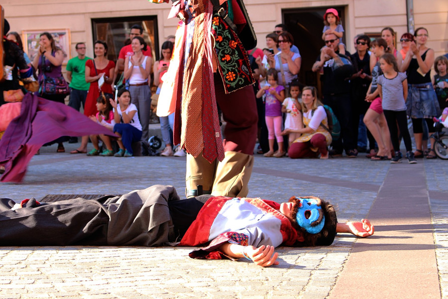 De ugyanez áll a színház esetében is. A középkorban a comedia dell'arte, néhány évtizeddel ezelőtt, a 60-as, 70-es, 80-as években pedig a happening és performansz művészek rendszeresen használták az utca felületeit formabontó előadásokra – miért ne lehetne bemutatni most is egy-egy rövid kis etűdöt?