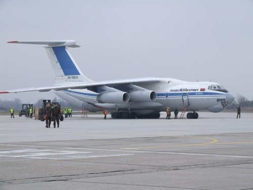 Az IL 76 típusú teherszállító gép néhány perccel 13 óra után tűnt fel a repülőtér légterében, és a méreteit meghazudtolva, néhány könnyed forduló után foglalta el a számára kijelölt állóhelyet. A forgalmi előtéren tevékenykedő műszaki és kiszolgáló személyzet gyors, pontos és összehangolt munkájának eredményeképpen a gép két óra elteltével fedélzetén a magyar katonákkal és felszerelési anyagokkal, dübörögve hagyta el a pápai repülőtér aszfaltját.