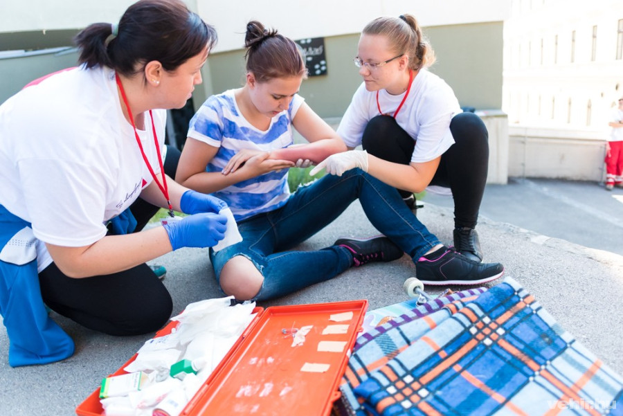 Ami a versenyzőket illeti: a két külföldi vendégcsapat mellett 21 gyermek, 20 ifjúsági és 20 felnőtt alakulat járta végig a belvárosban kialakított húsz állomást. Számukra már az is óriási dicsőség, hogy itt lehettek, ehhez ugyanis előbb a helyi, megyei fordulókban kellett bizonyítaniuk képességeiket. A feladatok már csak azért is kihívás elé állították őket, mert azokról előzetesen semmit nem tudhattak, minden információt a helyszínen kellett összegyűjteniük – pont, mintha a valóságban futnának bele egy váratlan helyzetbe. Leszámítva persze azt az apróságot, hogy a csapatok gumikesztyűkkel, ragtapaszokkal, gézekkel gondosan telepakolt elsősegély-dobozokkal felszerelve érkeztek, ami egy valóban váratlan szituációban nem lenne ennyire kézenfekvő. (Hozzá kell tennem, hogy elvileg minden gépkocsiban kellene lennie elsősegély doboznak, így ilyen helyzetben az első arra tévedő autóstól segítséget kérve hozzájuthatunk a szükséges kötszerekhez.)