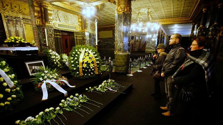 Budapest, 2016. november 19. Tisztelői leróják kegyeletüket Kocsis Zoltán kétszeres Kossuth-díjas, Liszt Ferenc-díjas zongoraművész, karmester, zeneszerző ravatalánál a Zeneakadémián 2016. november 19-én. A Nemzeti Filharmonikus Zenekar főzeneigazgatója november 6-án, életének hatvanötödik évében hunyt el. MTI Fotó: Balogh Zoltán