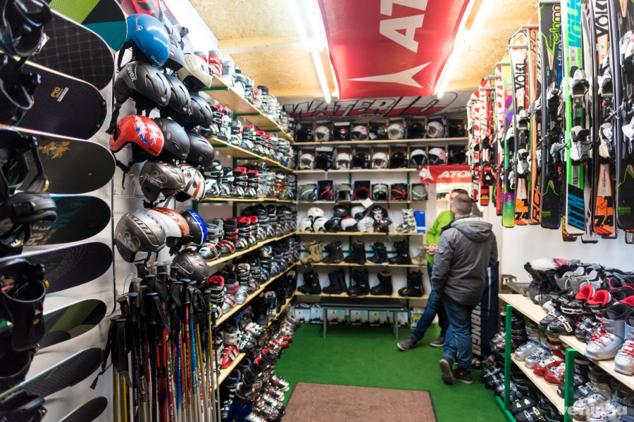 A polcokon mintegy 150 pár síbakancs sorakozik a 26-os mérettől elkezdve egészen az 50-esig. Síléceket - mintegy 120 párat - a 90 cm-estől a 170 cm-es hosszúságig találunk falakon. A snowboardokból és a sisakokból is gazdag a kínálat, szinte minden korosztály megtalálhatja a magának megfelelőt.
