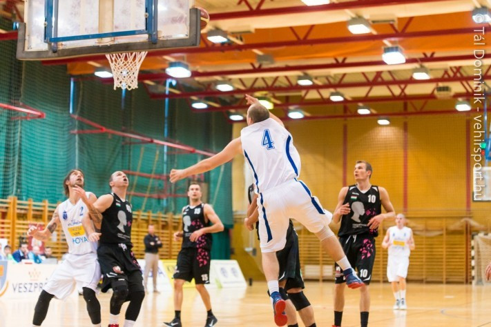 Az addig kivételes produkciót nyújtott erőcsatár a következő játékrész elején a kispadon foglalt helyet, amíg pihent, a rivális megkezdte a felzárkózást (21-26). A bakonyiak nem becsülték meg úgy a labdákat, mi több, a próbálkozásaik célt tévesztettek, így a Baki Sándor húzta tabella-nyolcadik ott lihegett a nyakukon: vagyis minden kezdődhetett elölről (25-26). Nebojsa Pavlovicék majd’ ötperces gólcsendet tartottak – a szezonban pompásan kosárlabdázó bosnyák légiósnak nem ez volt karrierje meccse, sok büntetőt és középtávolit hagyott ki, ám a mezőnymunkája így is hasznosnak bizonyult. A ritmusából kizökkentett éllovas ekkor szigorított a hátsó alakzatán, de a vérszemet kapott és a lepattanó-gyűjtésben akkor előrébb járt Tömösváry Mátéék egészpályás letámadással igyekeztek. Kálló törte meg a veszprémiek kosárszegény időszakát, csakhogy az éberség nem lankadhatott, mert gyakran megmutatkozott a Tolna-megyeiek kapacitása (29-33). A „festék” közelében furcsa volt látni a Tömösváry-Hegedűs csatákat, lévén, a harcosok éveken át egy szekeret toltak. Sportszerű összeakaszkodásaik árnyékában az ex-bonyhádi Jilling hárompontosa zárta le az első félidőt.