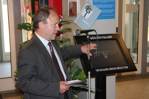 A rendőrség épületének előterében ünnepélyes körülmények között érintőképernyős, hivatalos jogszabálytárat adtak át, amely 100 ezer hiteles és hatályos jogszabályt tartalmaz.
