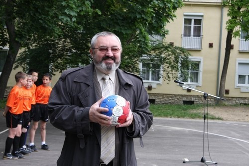 Egy avatásra váró focit hozott Némedi Lajos, az oktatási és sportbizottság elnöke is az ifjúságnak.