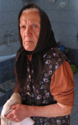 Személyleírása: kb. 145-148 cm magas, vékony testalkatú, barnaszemű. Vállig érő, ősz haját összefogva lófarokban viseli. Ruházata: sötét színű fejkendő, hosszú ujjú, fekete blúz, sötétkék alapon színes mintás otthonka, fekete mellény, sötét fűzős félcipő.