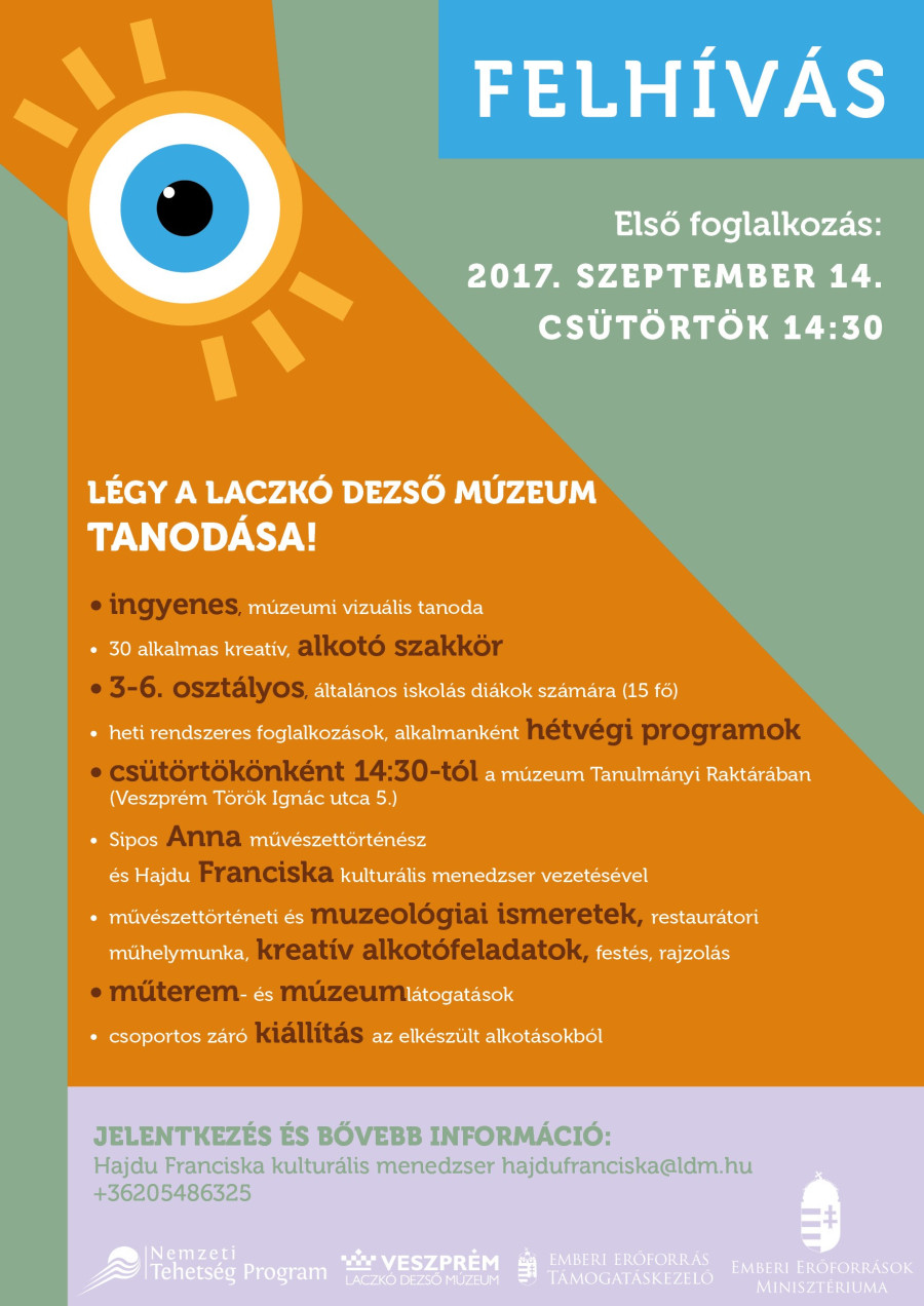 Kicsiben, de most ezekbe enged betekintést a Laczkó Dezső Múzeum 2017/18-as tanévre meghirdetett vizuális tanodája. A 30 alkalmas, ingyenes, kreatív alkotó szakkörre 3-6. osztályos általános iskolás diákok jelentkezését várják, akik szívesen megismerkednének azzal, milyen az élet a múzeum színfalai mögött, szívesen mélyülnek el az egyes művészeti korok remekeiben és igazi kihívásként tekintenek arra, ha hosszas és aprólékos munka során, de tulajdonképpen maguk állítják vissza eredeti állapotába az egykori tárgyakat.
