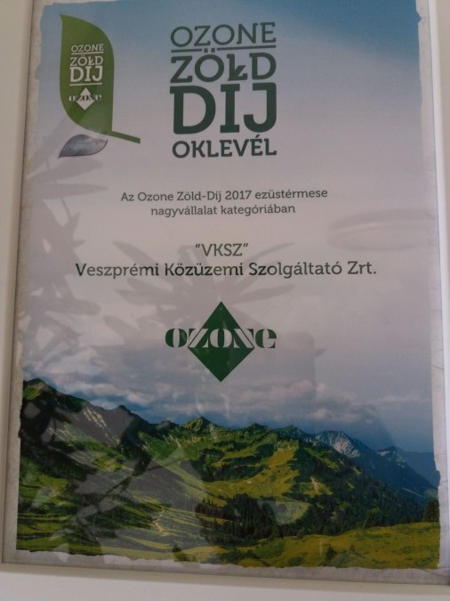 Az Ozone TV nyolc éve díjazza mindazokat, akik tesznek bolygónk megóvásáért és a fenntartható fejlődésért. Magánszemélyek, cégek, civil szervezetek, általános iskolák, szakkörök jelentkezhettek a pályázatra már megvalósult környezetvédelemmel vagy fenntarthatósággal kapcsolatos projekttel. A „VKSZ” Zrt. a 2017 áprilisában szervezett Fenntarthatóság MindenKOR rendezvénysorozattal pályázott és ezüstéremmel díjazták nagyvállalati kategóriában.