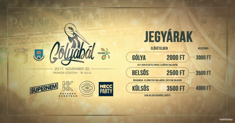Mindenki vésse be a naptárába: november 30-án gólyabál lesz a Pannon Egyetemen. Fellép a Kelemen Kabátban, a Supernem és a Magashegyi Underground, de az elmaradhatatlan Necc Partyt is megrendezik.