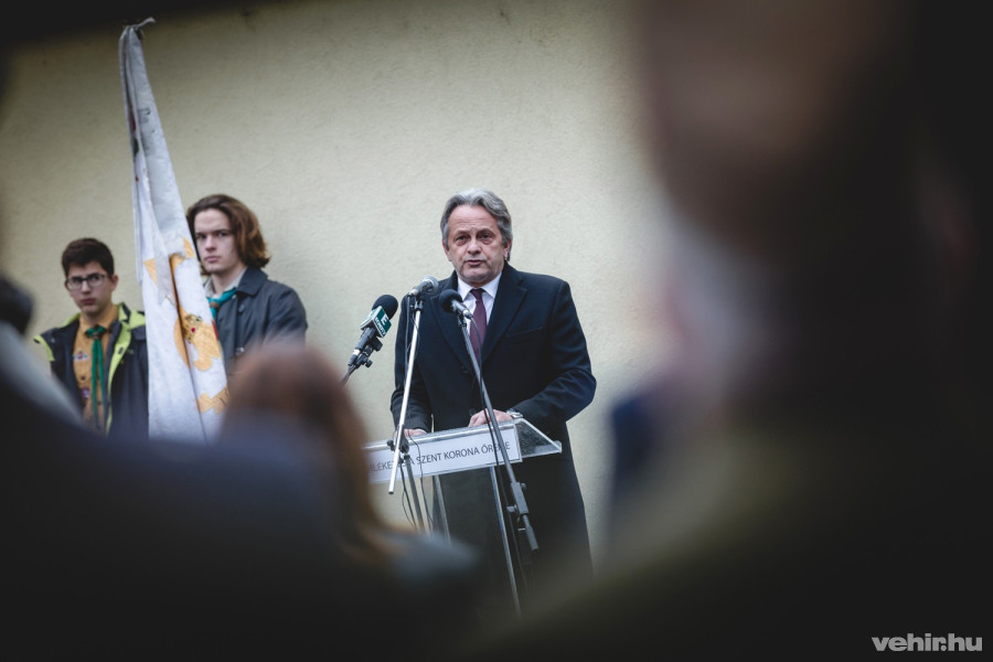 Vargha Tamás, a Honvédelmi Minisztérium parlamenti államtitkára kedd délután az emlékhelynél mondott beszédet.