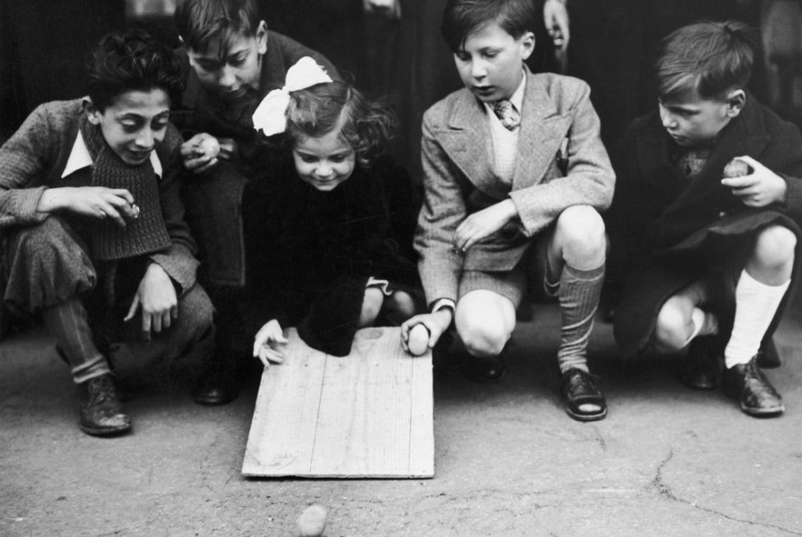 További variációk a tojás megszerzésére. /Fotó: Gyerekek és a kutyájuk húsvéti játékot játszanak, Cardiff, 1937. március 26. , Richards/Fox Photos/Getty Images