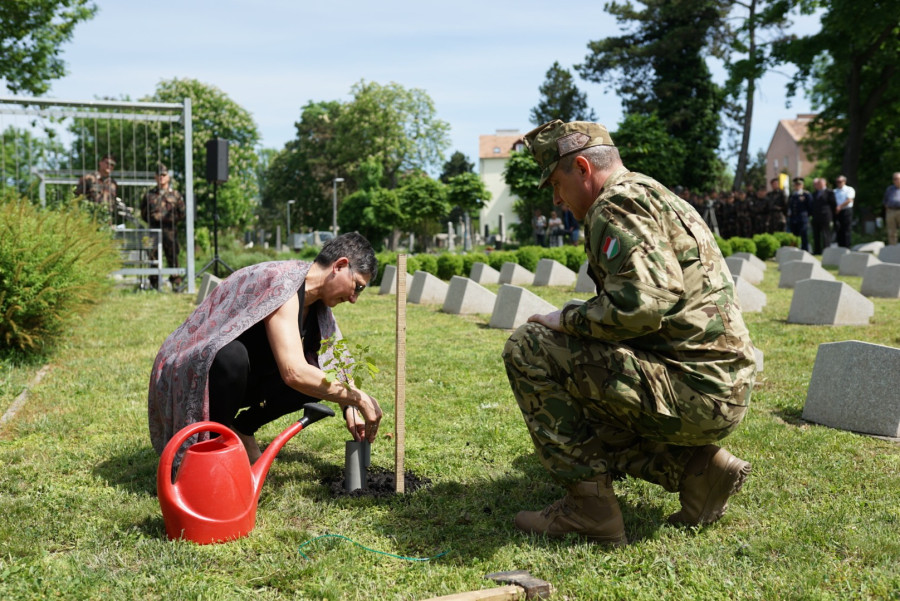 A beszédek után Brányi Mária Szegő Lászlóval, Szűcs József ezredes Perlaki Claudiával, az Emlékbizottság titkárával, valamint Zentai László ezredes Rainer Pállal közösen elültette a három facsemetét, majd Oláh Emil tábori lelkész megáldotta őket.