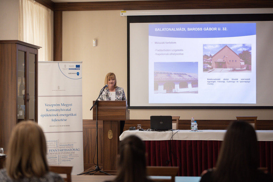 Ennek érdekében a kormány 2016 elején mintegy 1,3 milliárd forint uniós támogatást biztosított a Veszprém Megyei Kormányhivatal számára középületeinek energetikai fejlesztésére. A KEHOP-5.2.2 pályázat részeként a megye kilenc járásában (Ajka, Balatonalmádi, Balatonfüred, Devecser, Pápa, Sümeg, Tapolca, Várpalota, Veszprém) összesen 26 intézmény újult meg: az épületeken állapotuktól függően fűtéskorszerűsítést, homlokzat- és födémszigetelést, nyílászárócserét végeztek, valamint minden esetben napelemekkel szerelték fel őket. A beruházás két ütemben valósult meg, 2016 októbere és 2018 áprilisa között, a projekt fenntartási időszaka öt év.
