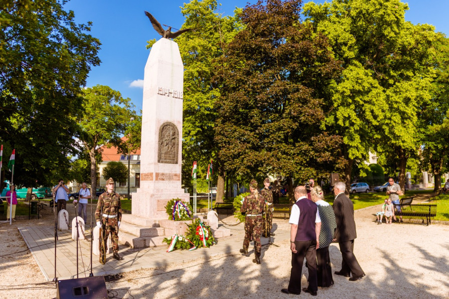 Ünnepi beszédében Brányi Mária alpolgármester felelevenítette a Vörösmarty téri emlékmű történetét, ami nemcsak a Nagy Háború hőseinek állít emléket, de magában hordozza az azóta eltelt évszázad történelmi fordulatait is. Minden 1914 nyarán kezdődött, amikor Veszprém két ezredének katonáinak kézbesítették a behívójukat. A veszprémi katonák végigharcolták a világháború négy évét, megjárták Európa legnagyobb csatatereit, vérüket hullatták és életüket áldozták a hazáért. Mindezek után a háború végén hazatérő, mindössze 280 veszprémi honvédot senki sem várta a jutasi vasútállomáson.