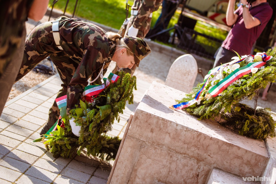 A vasárnapi megemlékezés zárásaként a résztvevők elhelyezték koszorúikat a hősi emlékműnél.