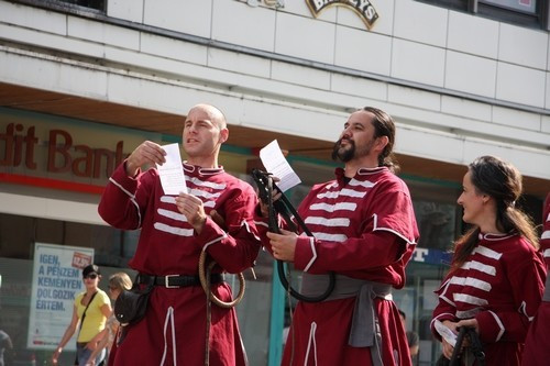 Látványos, jópofa, néha kissé ijesztő, de semmiesetre nem elítélendő. Effélét láthattunk szerda délután Veszprémben a posta előtt, majd az Óváros téren.