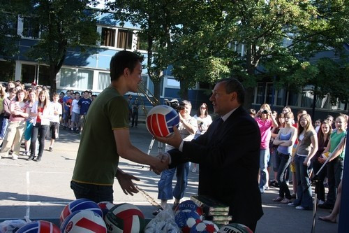 Szolnoki Pál képviselő jelképesen a búcsúzó nyolcadikos Kadelka Gergőnek adta át a sporteszközöket, majd dr. Strenner Zoltán a kis- és nagy diákoknak a sport terén elért eredményekért a jutalmakat.