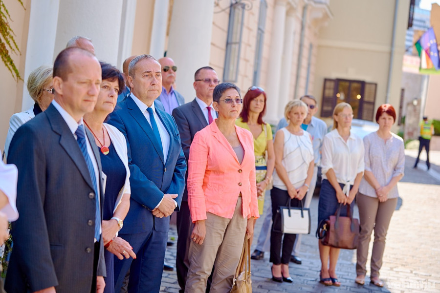 A tábla leleplezését követően koszorúkat helyeztek el, így Porga Gyula polgármester is, aki Veszprém Megyei Jogú Város nevében fejezte ki tiszteletét a babérkoszorú elhelyezésével.