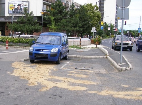 Csakhamar beigazolódott, hogy felesleges a képen is látható autó tulajdonosát gyanúsítani, miután kiderült, hogy a jármű jó egészségnek örvend, csupán félreérthető a parkolási helyzete.
