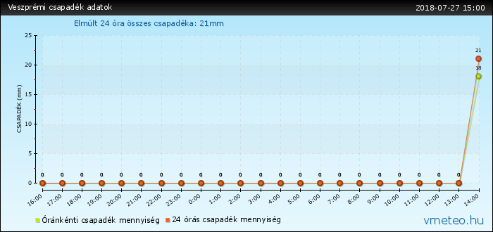 Az egy óra körül érkező sötét fellegekből egyetlen óra leforgása alatt 18 mm csapadék hullott a VMeteo adatai szerint. Az OMSZ statisztikái alapján júliusban ez az átlagos havi csapadékmennyiség nagyjából harmada.