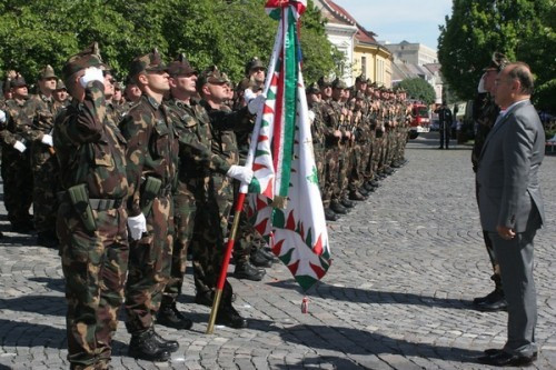 A veszprémi alakulat csapatzászlajára a tárca minisztere, Szekeres Imre kötötte fel a zászlószalagot, amely a lelkiismeretesen és magas színvonalon végzett munka elismerésének kitüntető szimbóluma.