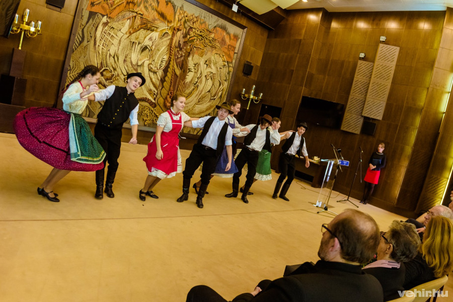 Az ünnepélyes díjátadót a Gizella-díjas, Kis-Bakony Néptáncegyüttes tagjainak műsora színesítette: csujogatástól, vidám daloktól, csizmák pergő kopogásától zengett a Városháza épülete.