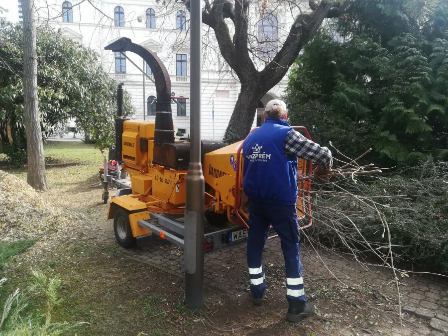A téren magonc fákat távolítottak el, drasztikus metszésekkel ifjították a cserjéket.