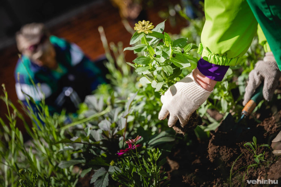 A VKSZ Zrt. ültetési tervei alapján, növények és szerszámok biztosításával összesen több mint 750 tő virágot – főleg dáliát, petúniát, verbénát, begóniát – ültettek el pénteken a járda mentén.
