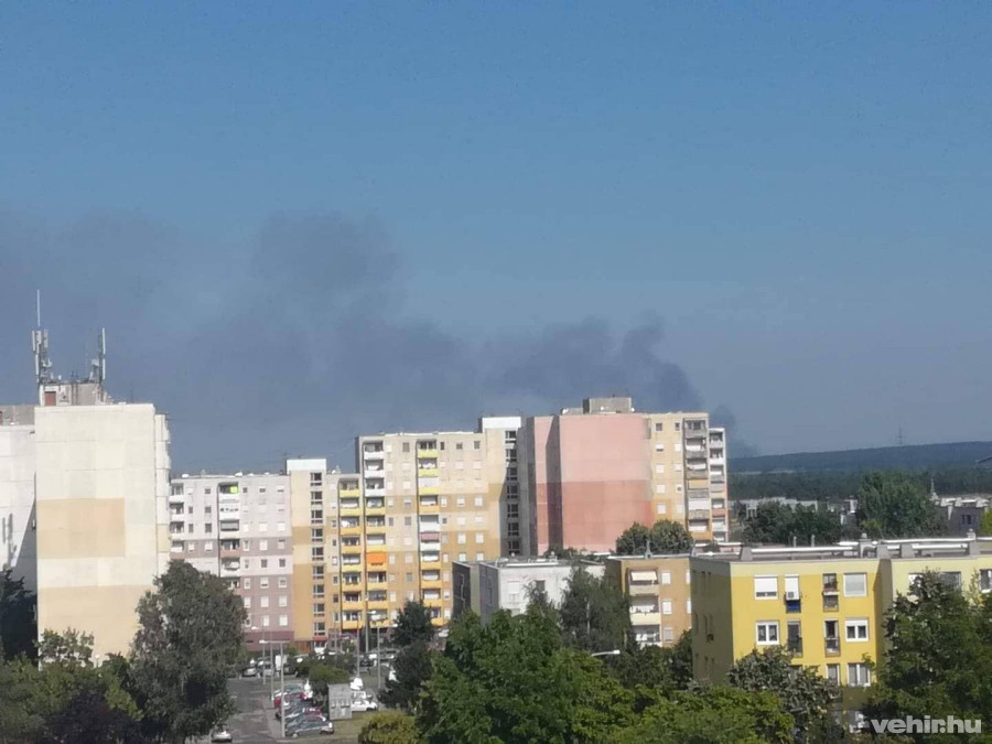 A telepen másodnyersanyag gyulladt ki, főleg műanyag bálák égnek, amelynek füstje ilyen jellegzetesen sötét színű, messziről is látható.