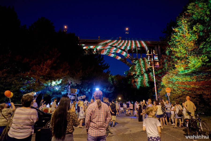 Nyolc órakor a Völgyhíd is felvette ünneplő ruháját: fényfestéssel öltöztették színekbe a hidat. A színes Viadukt 20-án este nyolctól ismét megtekinthető.