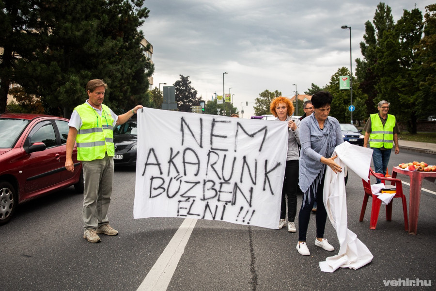 A tüntetők röplapokon tájékoztatták az araszoló autósokat követelésükről: zárják be a szeméttelepet, mert bár a veszprémiek ezt nem tapasztalják, de ők évek óta szenvednek a bűztől.