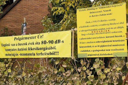 – Aztán itt a Tölgyfa utca, a buszforgalom sokszor elviselhetetlen zajt okoz, a poharak is rezegnek a polcokon, fékezéskor 90-100 decibeles hanghatást is produkálnak. Nemcsak az épületek állaga romlik, hanem az egészségünket is féltjük. A pihenés hiánya megviseli a szervezetet – folytatja.