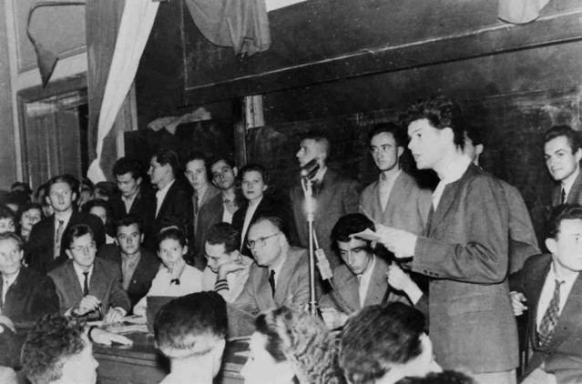 Azon belül is a Veszprémi Vegyipari Egyetemre, ahol október 15-én a Hazafias Népfront az „E” épület kamarájában ankétot szervezett, amelyen Brusznyai Árpád is felszólalt. Ekkor már az ország több pontján - elsőként Szegeden - életre hívták a Magyar Egyetemisták és Főiskolások Szövetségét (MEFESZ), amely politikamentesen, a diákok érdekvédelmi szervezeteként hivatott kezdetben működni.