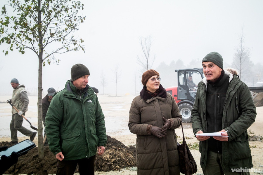 Ha a kora délutáni fagyos, ködös időjárás elszomorító is volt a Gulya-dombon állva, a Veszprémi Állatkert lelkiismeretes dolgozói gondoskodtak a jókedvünkről, ugyanis szerdán újabb facsemeték kerültek elültetésre: ezúttal a park előterében.