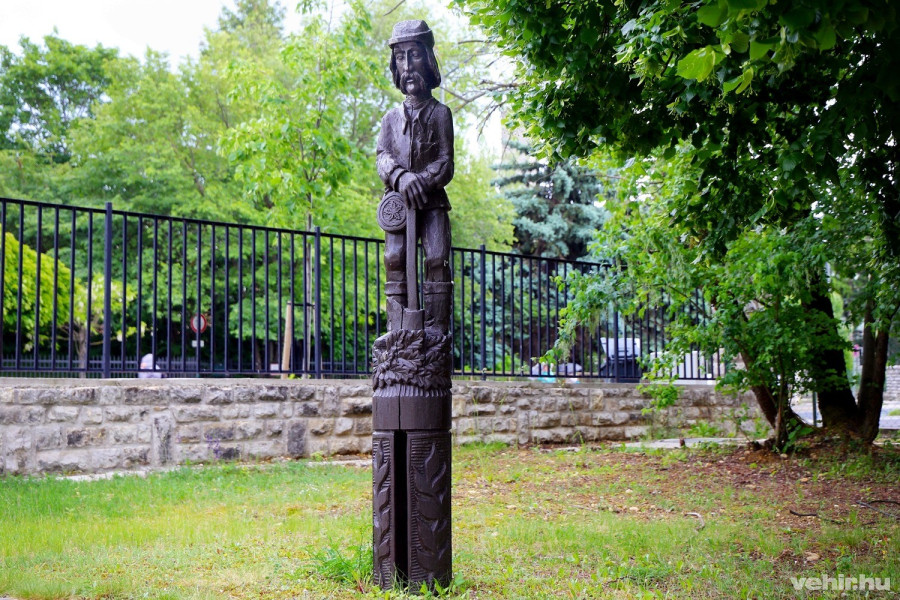 Ajándékba kapta egy veszprémi építőipari cég, egy erdélyi faragótól. Álló férfi alak, csizmában, erdész kabátban, széles övvel a derekán. Vállára vetve kulacs, lábai előtt hosszú nyelű fejsze, kezei ezen nyugszanak. Fején sapka, arca hosszúkás, sematikus ábrázolású, hosszú bajusszal.